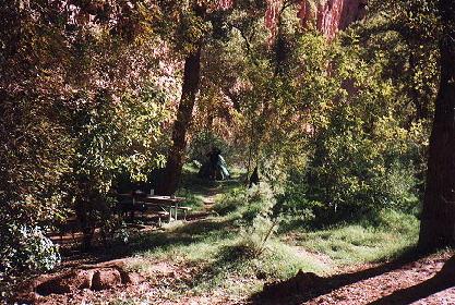 One of our tent sites. We had lots of room to spread out, and this image shows Dan and Shelly's tent pitched in a lush opening adjacent to the stream.