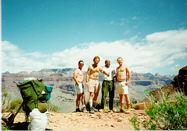 This trip was our second attempt at the Tonto Plateau from the South Bass to Hermit Trail. Our Fall '93 expedition was aborted after it became obvious we were ill prepared. However, we felt that that trip had reintroduced us to the rigors of inner canyon travel. We were better prepared physically and mentally, and had packed carefully. We were hoping that the spring snow runoff would make water available in all the side canyons we were to pass through, and had planned on filling up at the river the second day, instead of bringing all the water we needed from the top, which was our big mistake on our October trip.