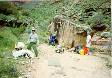 we had lunch under a huge overhang in the Tapeats sandstone in a downpour.