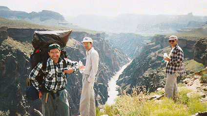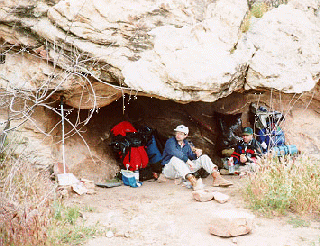 April 19-23, 1995. Spent the night on the rim and as usual got a late start, not getting to the trailhead until noon. It was unseasonably cold, with a blanket of snow covering the rim and a ligth snow falling as we headed down the Bright Angel. The snow turned heavy when we reached the Coconino sandstone and it was utterly beautiful. We arrived at Indian Gardens at 3pm, filled our water bottles, ate a good meal and headed east on the Tonto. We ran into 2 hikers coming from the opposite direction and they told us that there was water in every canyon along the way, greatly simplifying our planning as far as water goes. We spent the night at Pipe Springs, in an overhang on the east side of the creek just after the trail crossing.