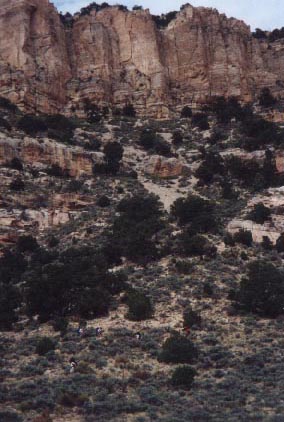 Switchbacks from below the Coconino down to the Esplanade.We're towards the bottom. The switchbacks seem endless in this section!