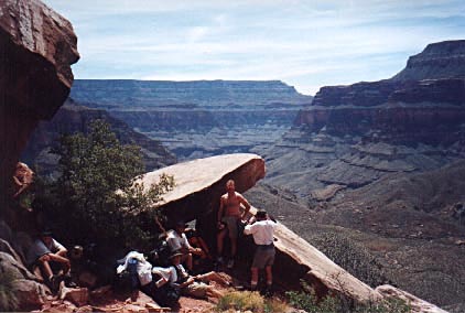 This photo was taken on the way back up the Redwall. While not hot by summer standards, we still looked for shade to take our rests.