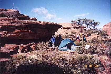View of the first night campsite. Some of us slept under that overhang. The Defraias were in the tent.