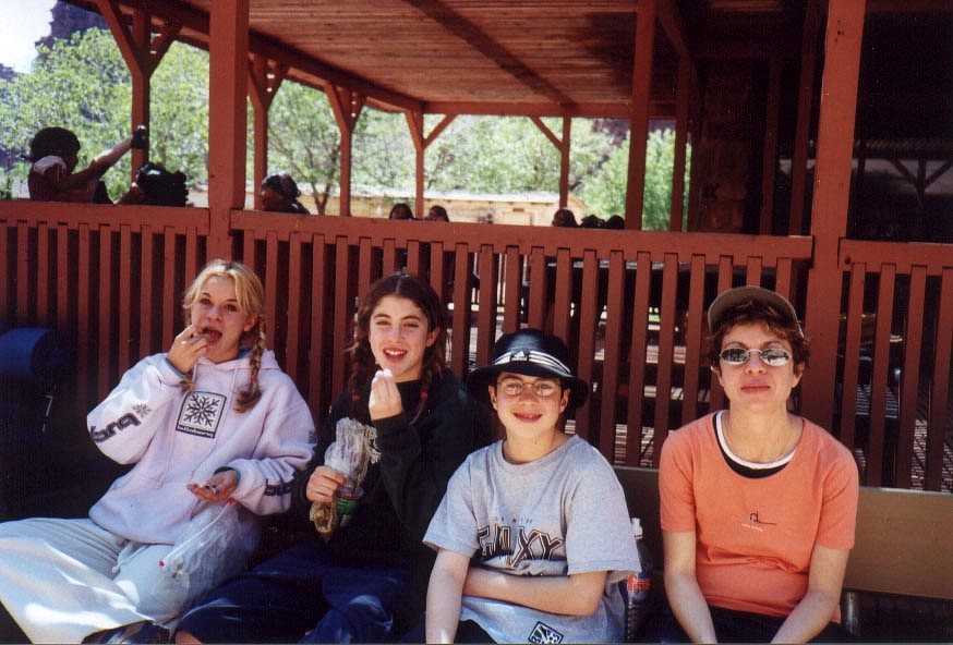 Katie, Emily, Gavin and Mary Beth take a break in front of the cafe.