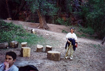 Linda finally arrives at the campsite. There is a definite look of relief on her face.