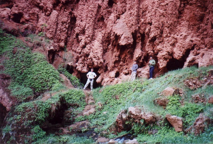 Mike, Tony, and Zia explore the small caves just to the right side of Havasu Falls.