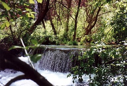 The lush, tropical feel just below Mooney Falls. The falls can be seen in the background.