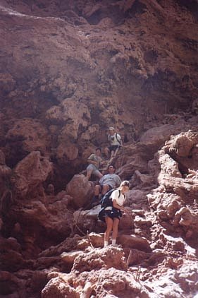Carly, Johnny, Zia and Mike begin their final descent to the base of Mooney Falls.