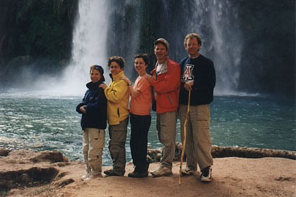 My favorite picture. All the Calenti siblings at the falls. How many families are healthy enough to ALL walk to Havasu? For that matter, how many siblings really like each other enough to want to? From left: Linda, Sue, Mary Beth, Mike, Cheech.
