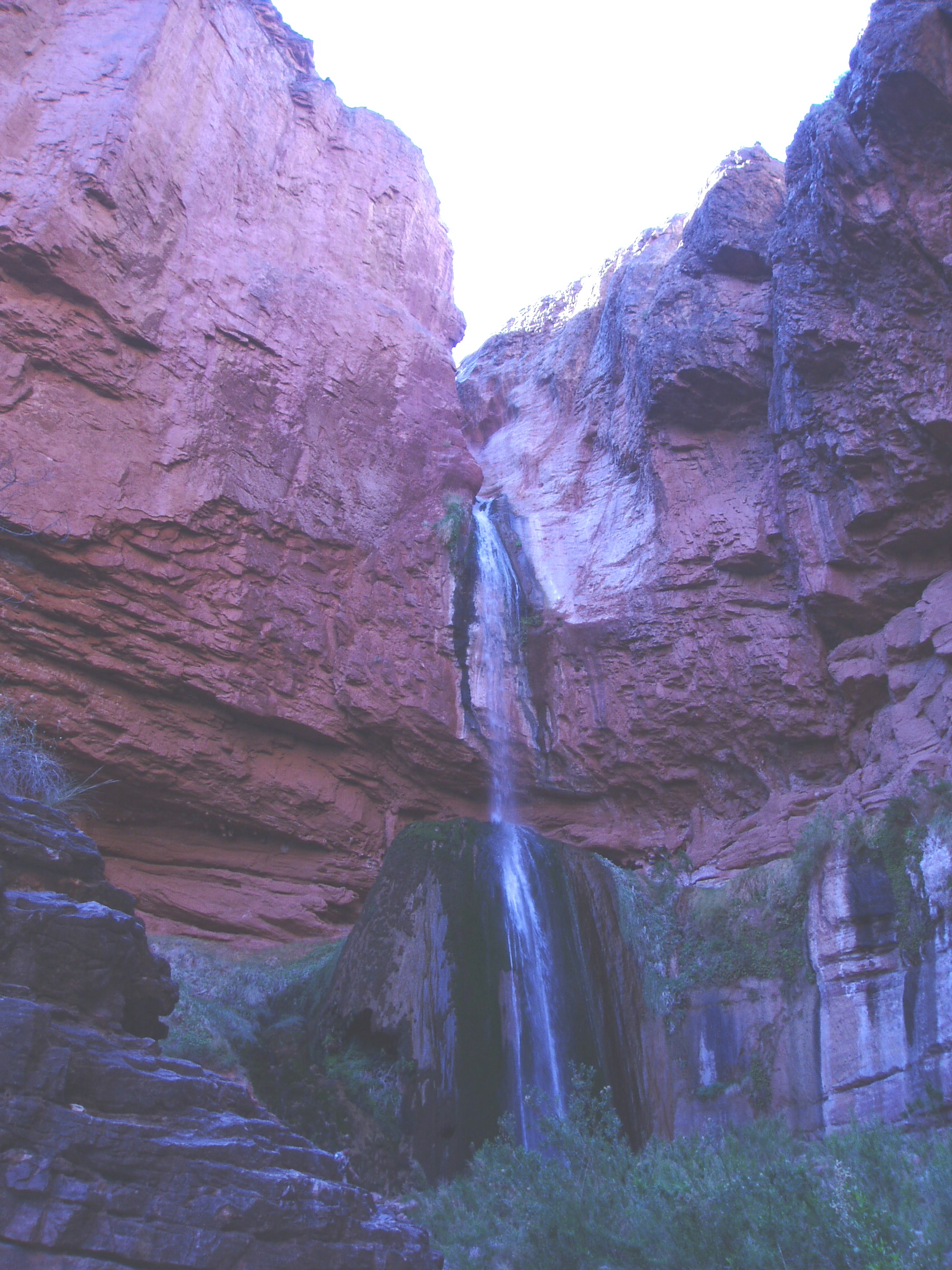 Ribbon Falls. The top sections falls to a travertine deposit where the water gently slides over the moss covered veil until it reaches the pool