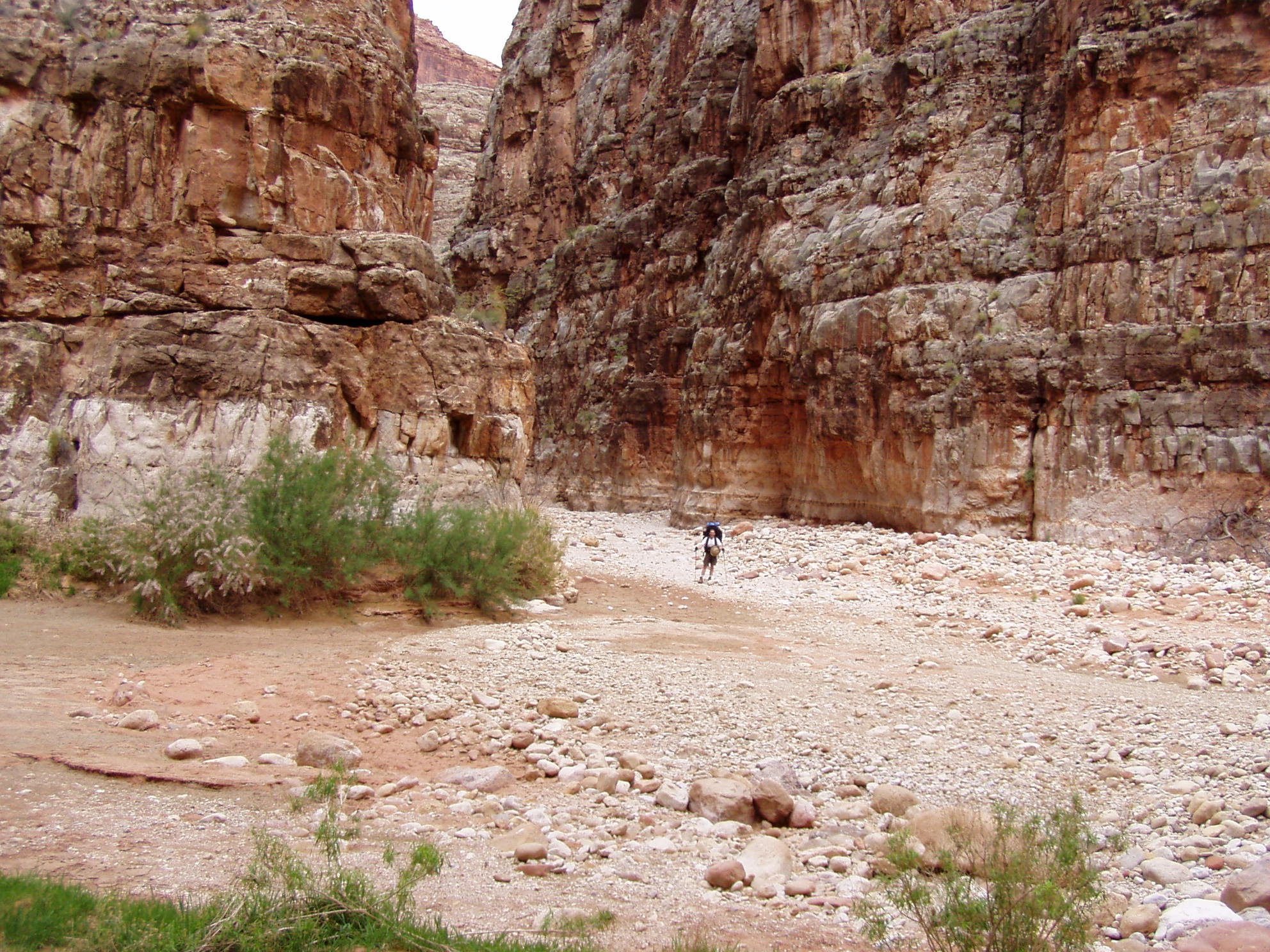 Just to get a perspective on the size of things, we took this picture from the lunch area of Gary getting ready to enter Jumup canyon.