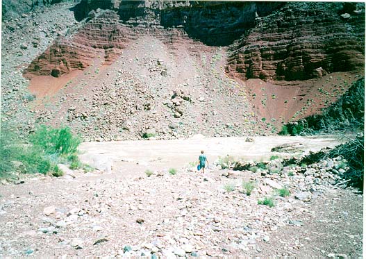 We arrived at the Colorado River at Hance Rapids the second day. This is Cheech heading to the water to have some lunch.