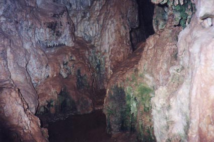 A view of the inside area of the limestone cave next to Havasu Falls.