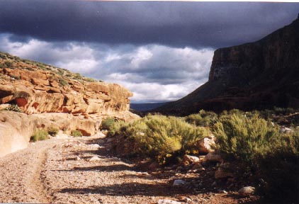 A typical view of the trail as it begins to enter the sandstone canyon it follows to the village.