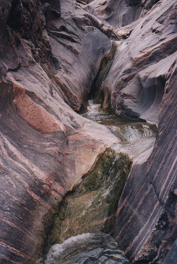 The water of Monument Creek has polished the Vishnu Schist.
