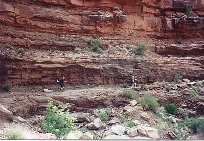 Mike and Zia walking along one of the terraces of the Supai Group on the Hermit Trail.