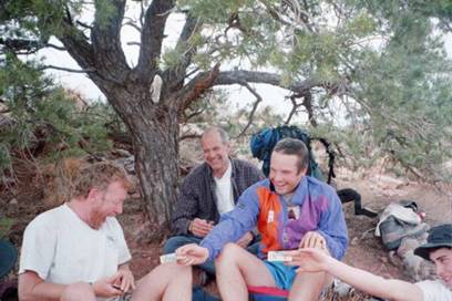 On the way home when I again referred to Cheech as the Canyon Master, Dad got quite aggravated and said, “Dan, think about it. What did Cheech do on this trip? Tom made all the arrangements for the trip and planned the route. Who carried the filters? We did. And you carried the water from the river every day and filtered it. Who carried the stoves and fuel? We did. Who set up for dinner and cooked the meals? We did. After the first day the most he moved was to lift his glass of wine and hold his cards! This Canyon Master stuff is just a scam. It was all about getting everyone else to do all the work!”