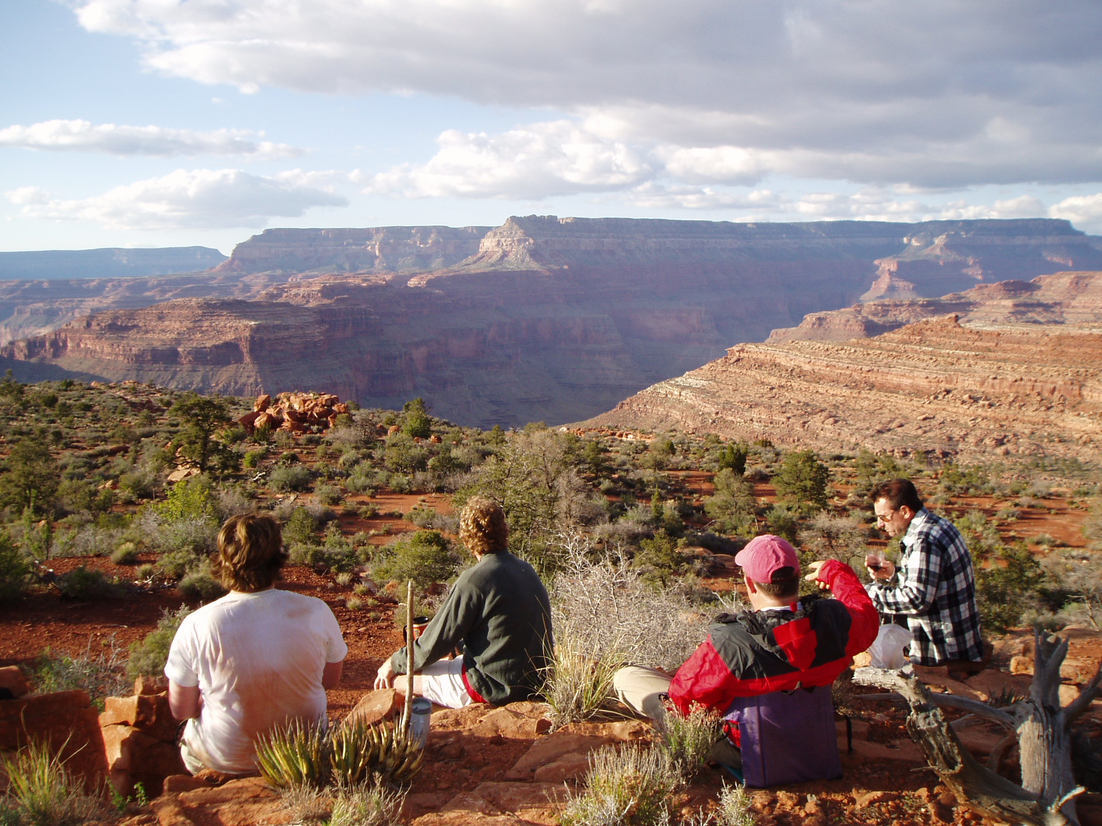 We set up camp and enjoy the sunset with some fine wine. We had done about 7 miles the first day.