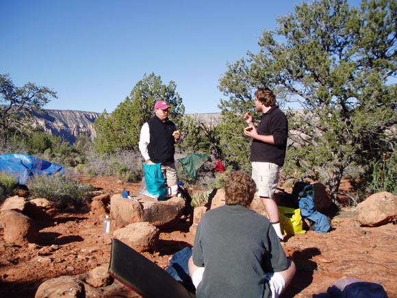 Breakfast the following morning. Tom brought a toaster and had bagels every morning. They were great, but he had a hard time finding an outlet for the toaster.