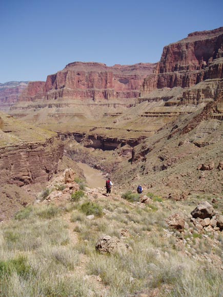 Here is the descent from below the rappel to the drainage. This took about an hour.