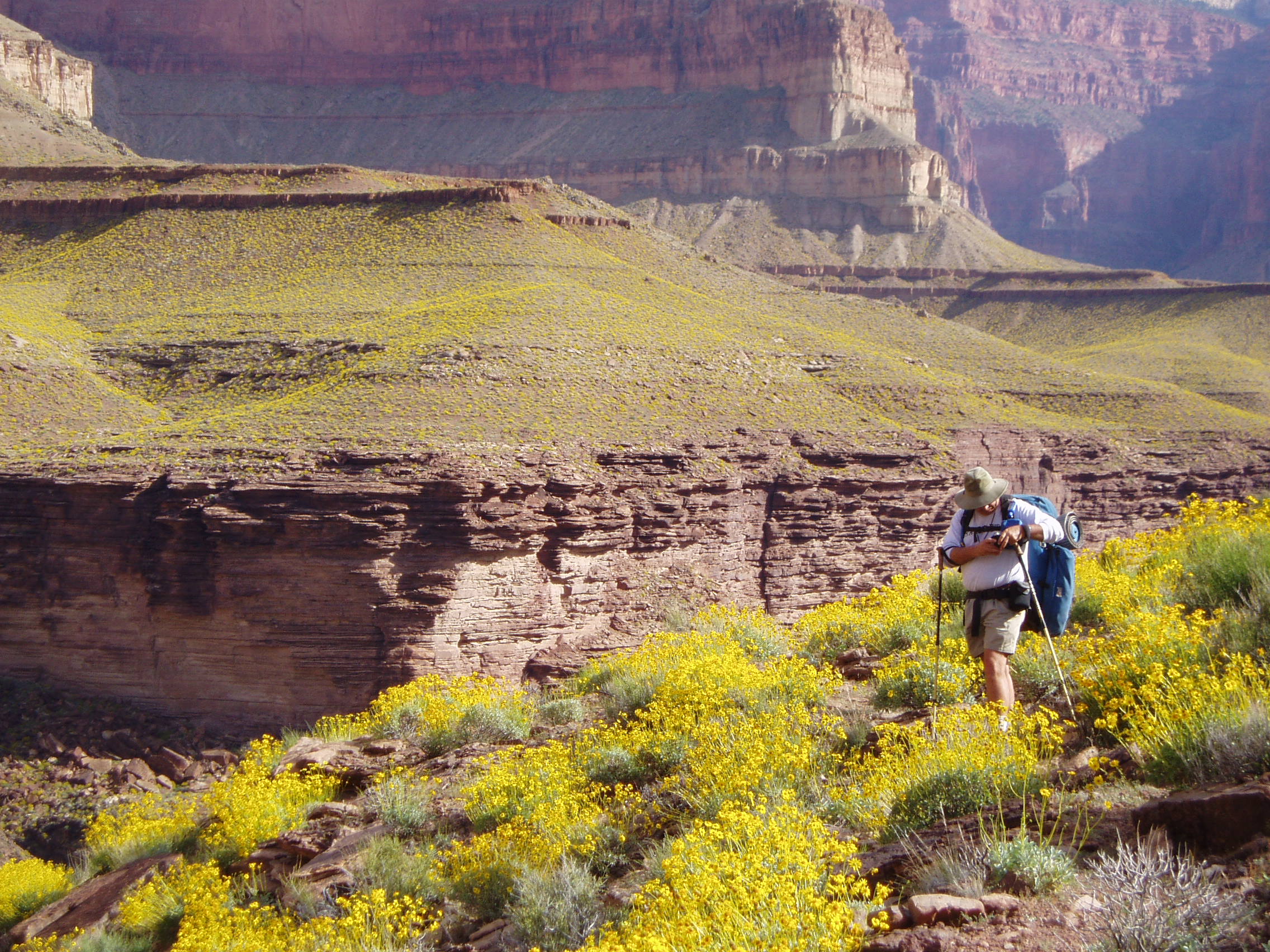 A more expansive shot of the flowers on the Tonto. From afar the entire plateau was blanketed in yellow.