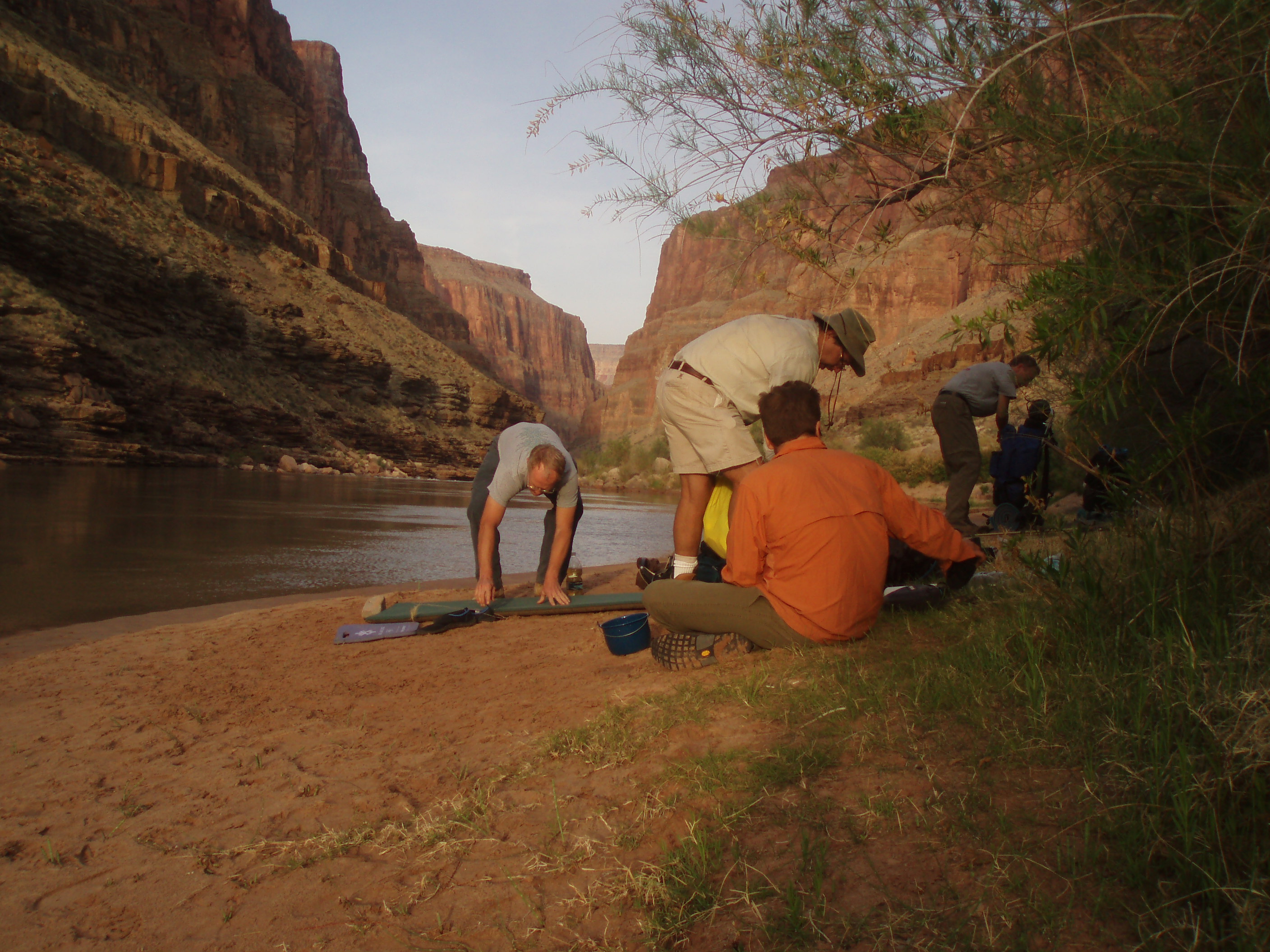 Sunrise at Fishtail Creek. We had camped right where our backpacks were dropped off on a sandbar. Everyone is getting their packs ready for the trudge over to Kanab Creek.