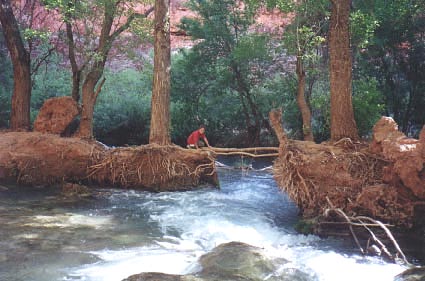 I did not allow Tony to try this crossing, even though it is about 1/2 mile before the creek drops over Mooney Falls. The results of the flood of 92(?) are very evident here.